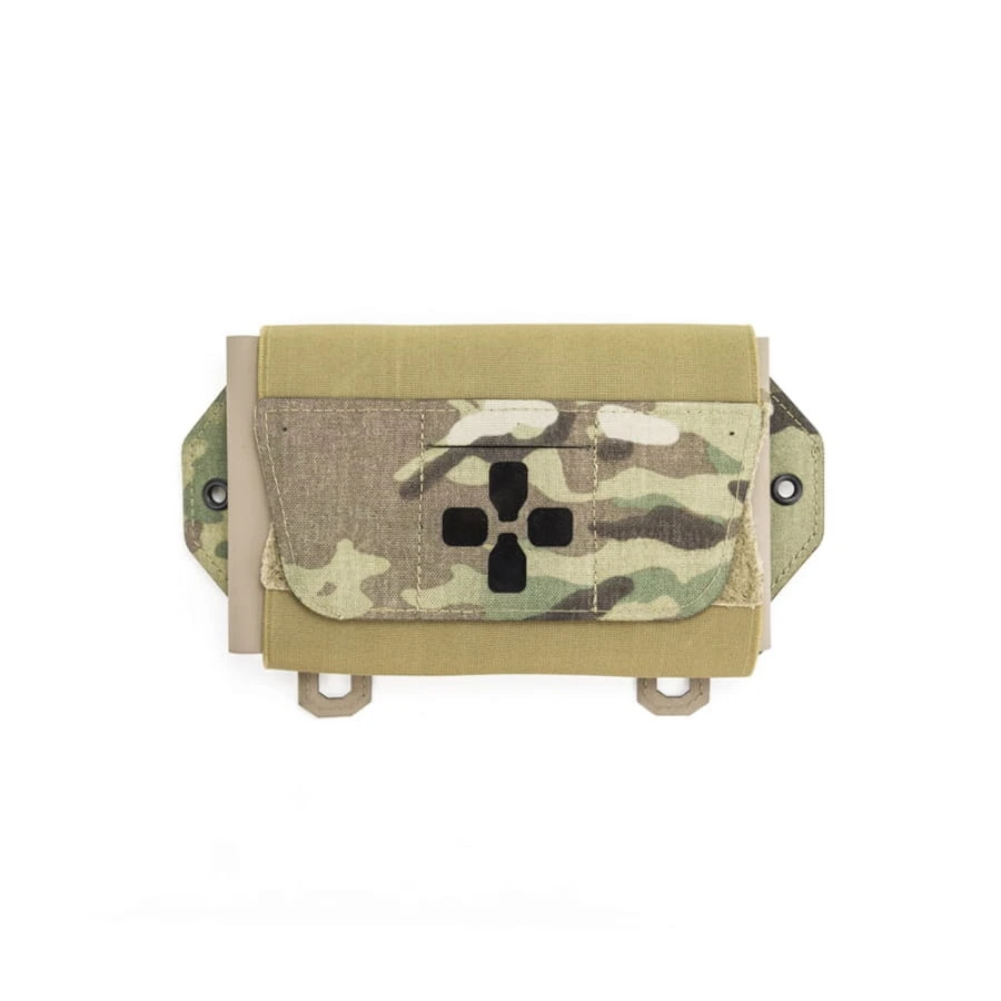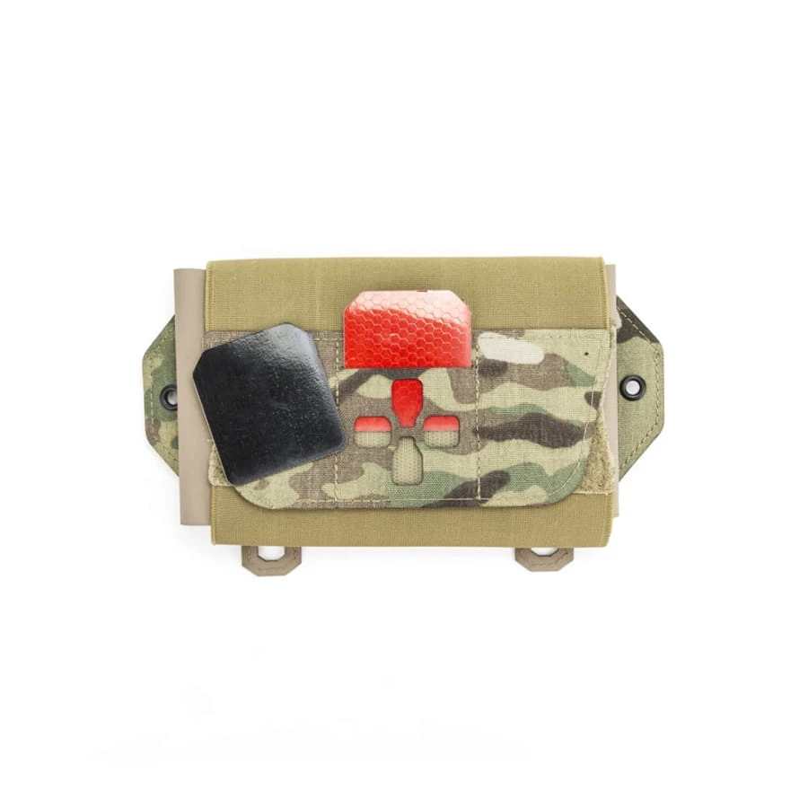 Apteczka wyróżnia się wyjątkową wytrzymałością, dzięki czemu sprosta nawet trudnym warunkom bojowym. Dzięki dwustronnym chwytom można ją wysunąć z obu stron, a wysokiej jakości suwak zapewnia możliwość całkowitego rozpięcia. Wewnątrz znajduje się wkładka z elastycznymi paskami do mocowania materiałów medycznych. Rozmiar kieszeni można regulować za pomocą rzepów, co umożliwia dopasowanie do w pełni wypełnionej wkładki. Kieszeń wyposażona jest w mocowanie systemu MOLLE, co pozwala na łatwe przymocowanie do dowolnego sprzętu kompatybilnego z MOLLE.