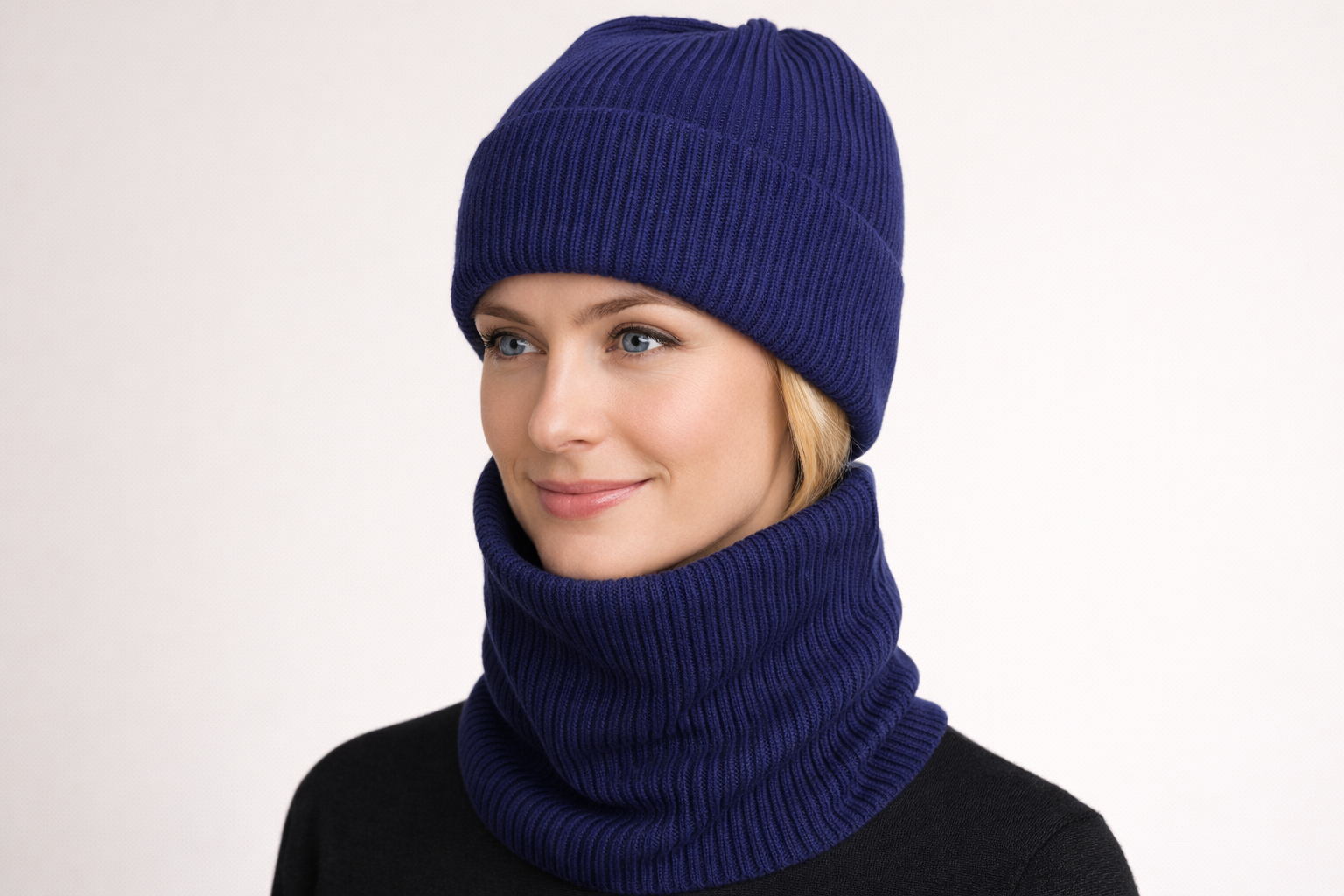 Elastyczny splot oraz uniwersalny krój zapewniają dobre dopasowanie do głowy i szyi bez ucisku. Wełna merino jest miękka, niegryząca i antyalergiczna, co czyni zestaw odpowiednim także dla skóry wrażliwej.