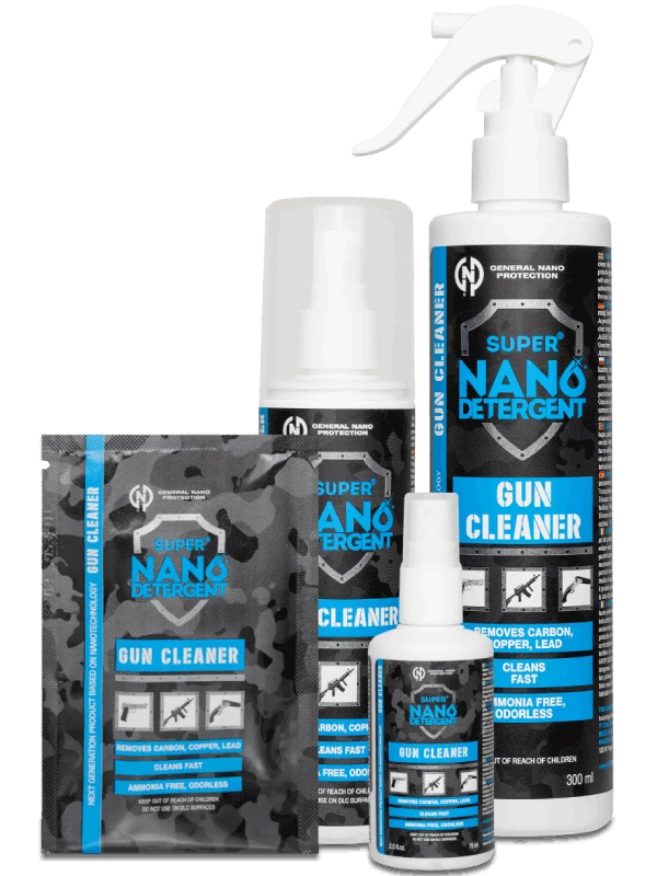 Super Nano GUN CLEANER to środek czyszczący, który szybko i łatwo usuwa węgiel, stary smar, miedź, ołów i cynk. Nie zawiera amoniaku. Jest niepalny. Może być używany wewnątrz, ponieważ nie ma zapachu i nie wydziela toksycznych oparów. Spełnia wszystkie standardy przemysłowe w zakresie konserwacji broni strzeleckiej. Jest nieszkodliwy dla metalu, drewna, farb, lakierów, ceramiki, gumy oraz plastiku.