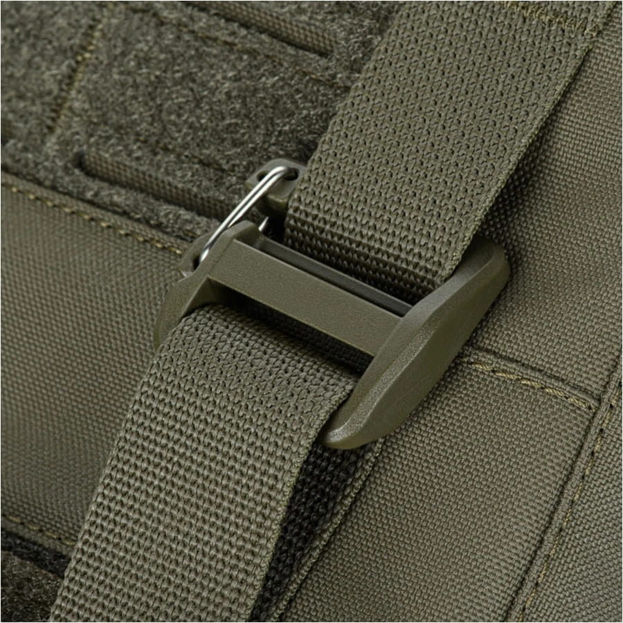 System MOLLE/PALS na froncie, tyle i cummerbundzie pozwala dowolnie konfigurować oporządzenie zgodnie z preferencjami użytkownika. Na froncie znajduje się panel administracyjny z wodoodpornym zamkiem YKK Aqua-Guard, idealny na dokumenty i drobne akcesoria. Dodatkowo na froncie znajduje się panel z trzema ładownicami na magazynki karabinowe, zabezpieczony klamrami Woojin, gwarantuje stabilność i natychmiastowy dostęp do amunicji.