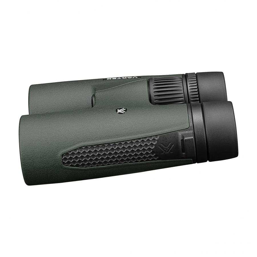 Konstrukcja jest uszczelniona, co gwarantuje jej wodoodporność oraz ochronę przed zapyleniem wnętrza. Wypełnienie azotem chroni optykę przed parowaniem w niskich temperaturach. Powierzchnia lornetki została pokryta gumowym tworzywem antypoślizgowym, który zapewnia dodatkową ochronę oraz pewny chwyt, nawet w wilgotnych warunkach. Vortex Triumph HD 10x42 posiada również regulowaną długość muszli ocznych, co umożliwia jej dostosowanie do użytku z okularami, zapewniając komfort podczas obserwacji.