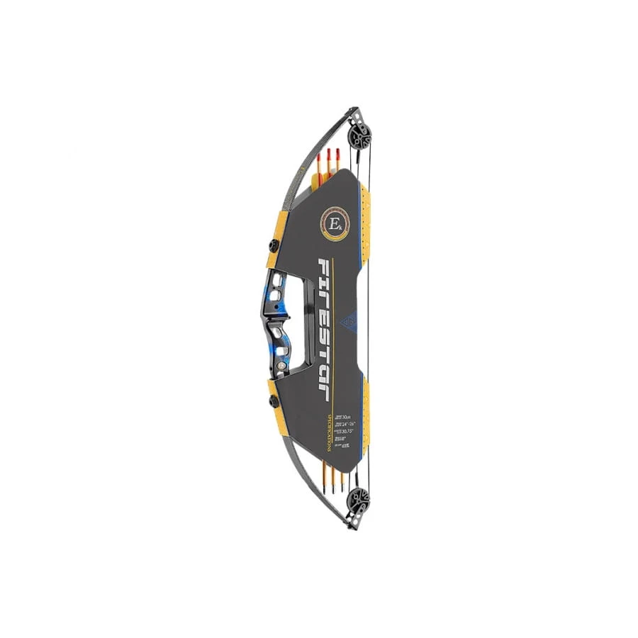 Łuk bloczkowy Firestar firmy Ek Archery Research z karbonowym wzorem ramion stworzony został z myślą o początkujących adeptach łucznictwa w szczególności dzieci i młodzieży.