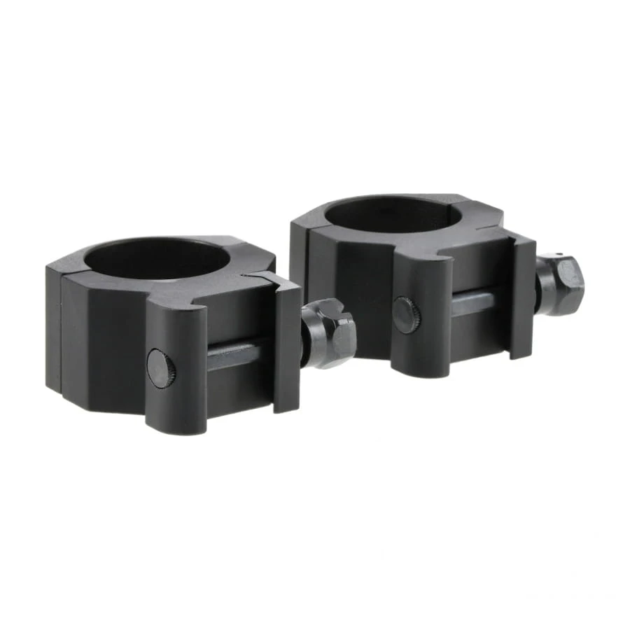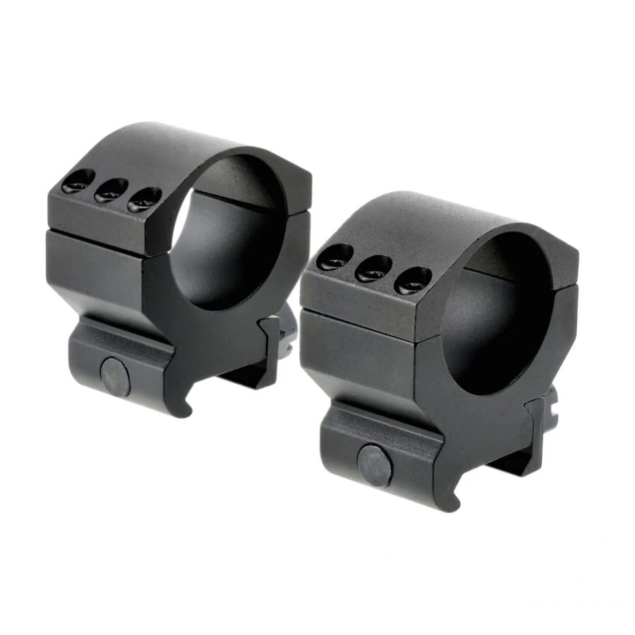 Pierścienie wykonano z anodowanego aluminium. Elementy są lekkie, dlatego nie zwiększą odczuwalnie masy karabinka. Precyzyjna konstrukcja oraz sześć śrub mocujących gwarantują pełną osiowość montażu lunety, stabilne utrzymanie zera oraz odporność na odrzut broni.