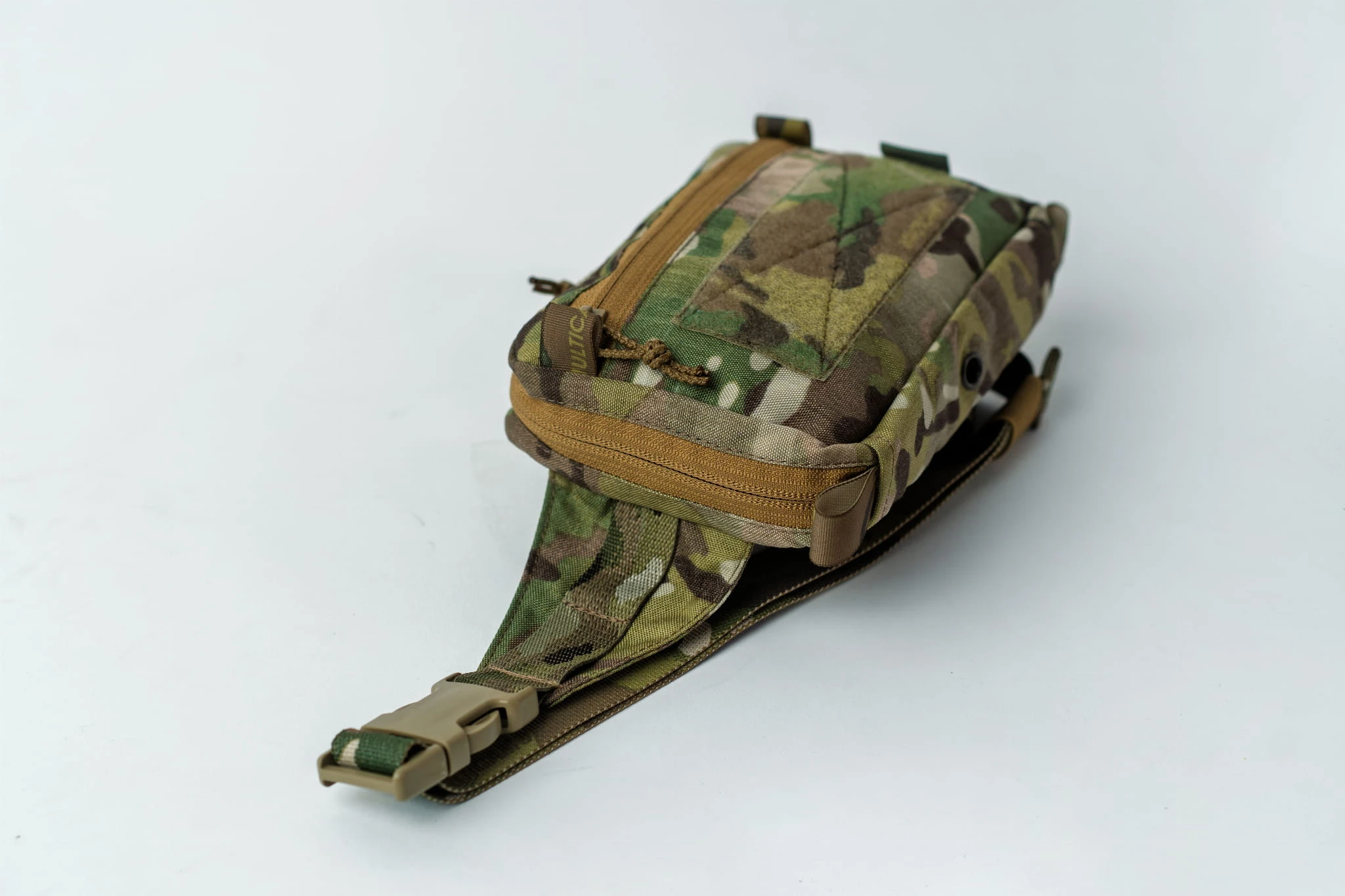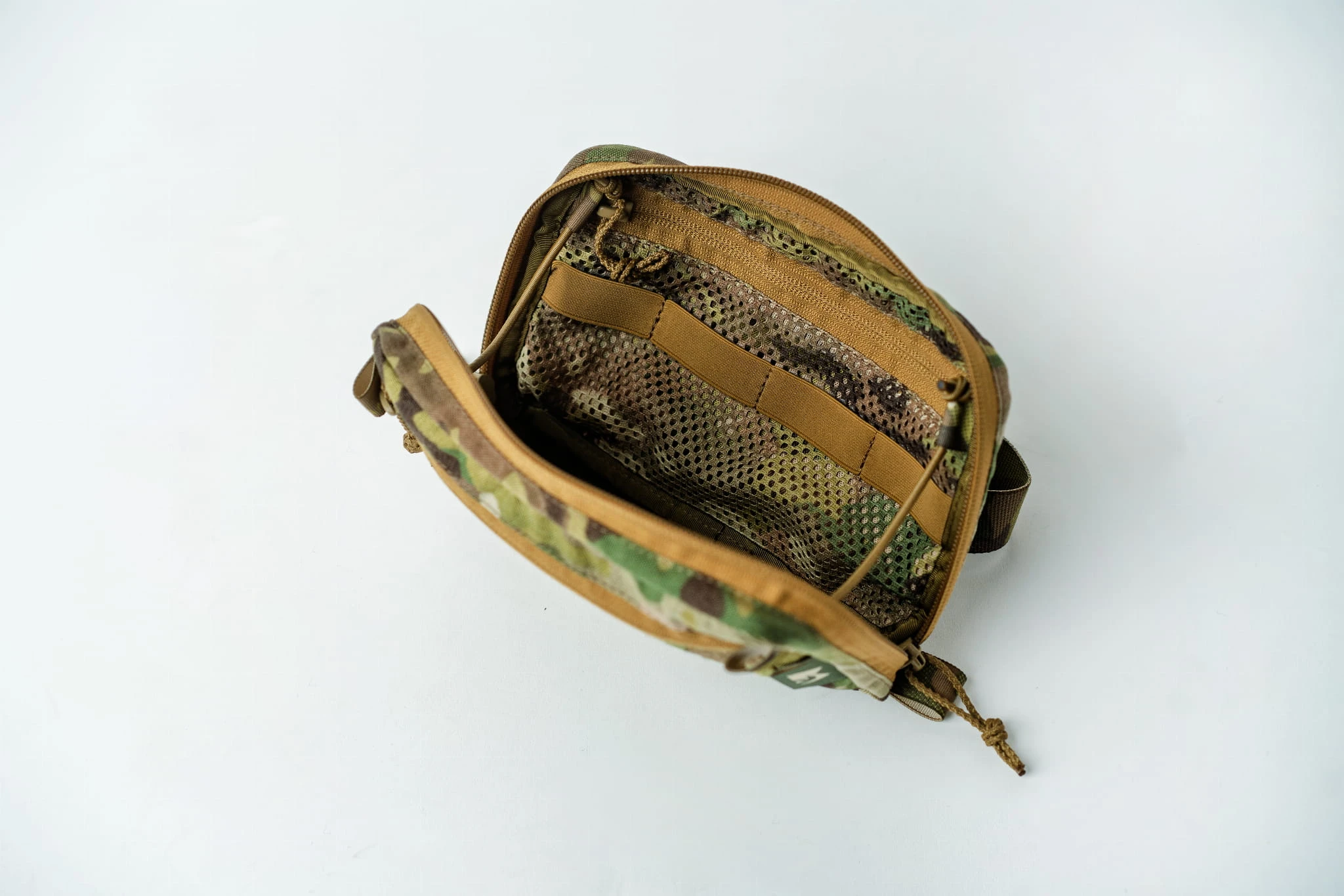 Wnętrze oferuje siatkowe kieszenie, elastyczne taśmy stabilizujące oraz panel MOLLE, umożliwiające przemyślaną organizację wyposażenia i montaż dodatkowych akcesoriów. Ściągacze typu shockcord zabezpieczają zawartość przed przemieszczaniem się podczas ruchu.