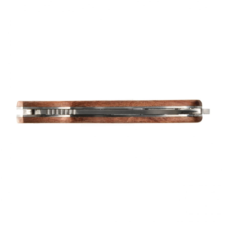 Okładziny chwytu noża są wykonane z drewna. Naniesiono na nie teksturowanie przeciwpoślizgowe. Nadaje to narzędziu unikalny charakter.