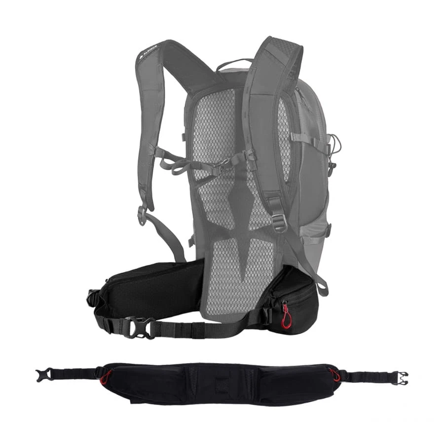 Komfort noszenia to jedna z największych zalet modelu Negoiu 20. Wyprofilowany system nośny zapewnia dobrą wentylację pleców przy bardzo niskiej masie plecaka, a miękko wyściełane, regulowane pasy naramienne dobrze układają się na ramionach. Regulowany pas biodrowy obszyty siateczką mesh stabilizuje plecak podczas ruchu i odciąża barki, a co istotne – można go całkowicie wyjąć i używać samodzielnie jako praktycznej saszetki. Dwie kieszenie na pasie biodrowym pozwalają mieć telefon, portfel lub żele energetyczne zawsze pod ręką, bez konieczności zdejmowania plecaka.