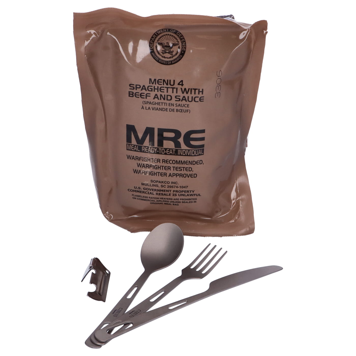 • Racja żywnościowa MRE – oryginalne wojskowe danie. Menu dobierane losowo, by zapewnić różnorodność.