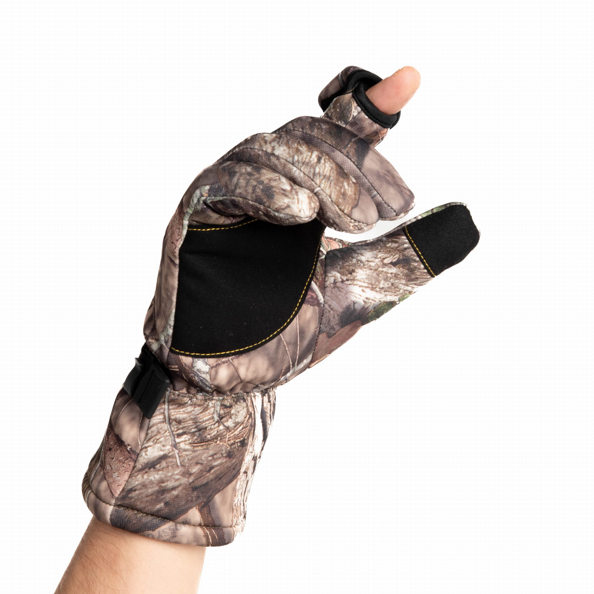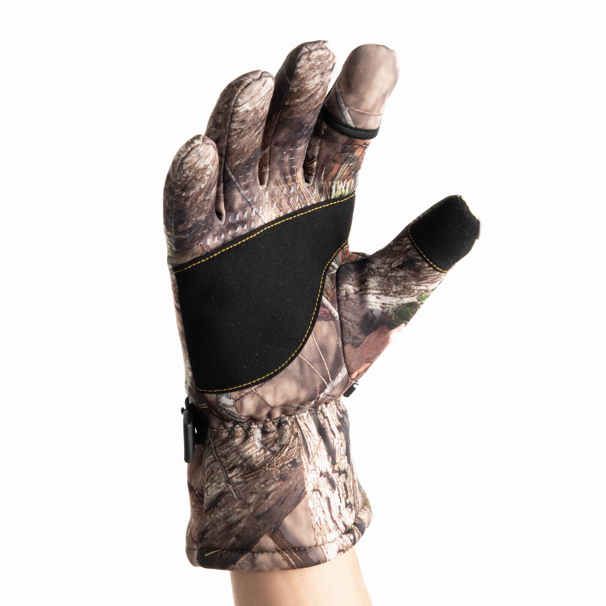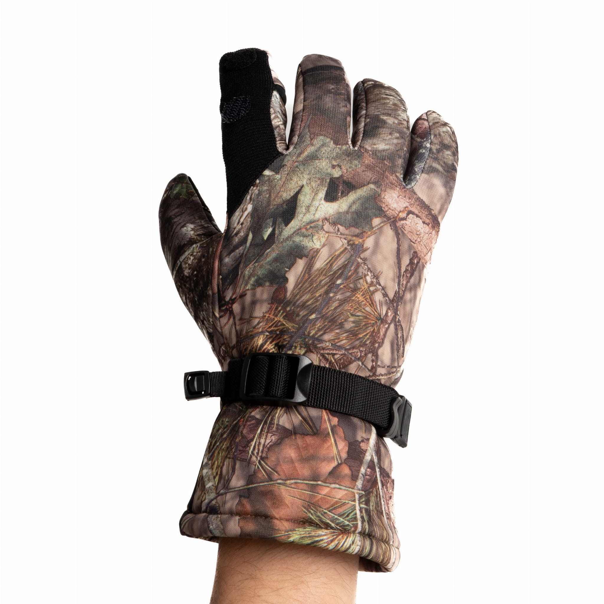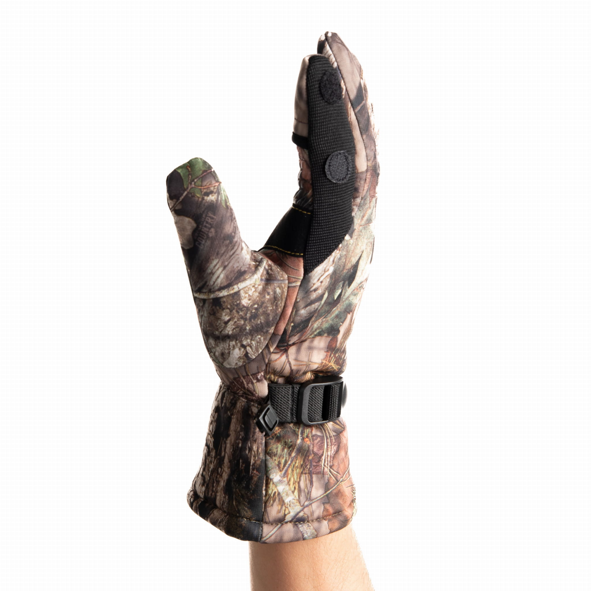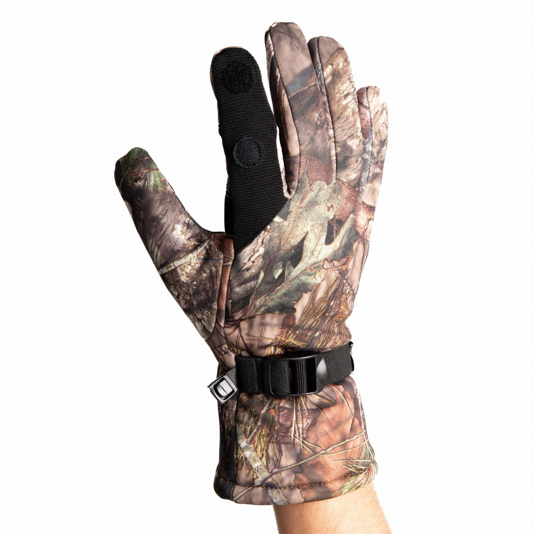 Kamuflaż leśny – realistyczny nadruk CAMO sprawia, że rękawice wtapiają się w otoczenie i doskonale sprawdzają się w myślistwie i outdoorze.