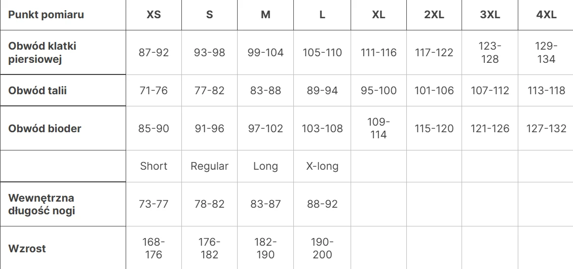 Model posiada 6 kieszeni: dwie przednie, dwie tylne zapinane na guziki oraz dwie kieszenie cargo. Wzmocnienia na kolanach i pośladkach zwiększają trwałość w miejscach najbardziej narażonych na zużycie. Gumowe ściągacze w pasie oraz w kieszeniach cargo poprawiają dopasowanie i stabilność przenoszonego wyposażenia.