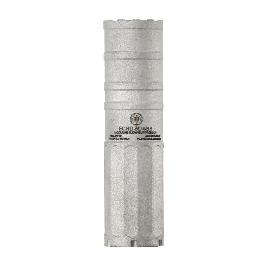 ECHO 3D wyposażono we wszechstronne złącze HUB w standardzie 1.375-24, dzięki czemu współpracuje z popularnymi adapterami i systemami montażowymi dostępnymi na rynku. Monolityczny korpus z nierdzewnej stali SS17-4PH gwarantuje wytrzymałość i odporność na eksploatację, a powłoka Cerakote chroni powierzchnię i daje unikalny, taktyczny wygląd. Przekłada się to na komfort użytkowania — tłumik gotowy do działania w każdych warunkach.