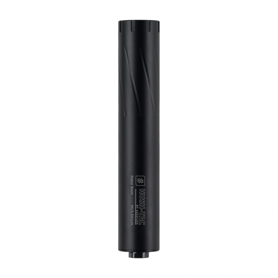 Hush-Tac Pistol 9 mm to wysokiej klasy moderator dźwięku od polskiego producenta, marki L-Tac. Tłumik został zaprojektowany i wyprodukowany przy użyciu precyzyjnych technologii obróbki na maszynach CNC i jest dostosowany do pistoletów w kalibrze 9 mm. Wykonano go ze specjalistycznego stopu aluminium, dzięki czemu charakteryzuje się wyjątkową odpornością termiczną, lekkością oraz wytrzymałością, zapewniając przy tym redukcję dźwięku na poziomie do 32 dB, nawet podczas intensywnego strzelania. Konstrukcja została zoptymalizowana pod kątem pistoletów samopowtarzalnych opartych o odrzut lufy oraz ryglowanie poprzez przekoszenie. Zastosowany tutaj system wspomagania (Nielsen Device) z dedykowaną sprężyną przekłada się na poprawną pracę automatyki broni po każdym strzale bez ryzyka zacięć. Przedstawiona wersja moderatora jest zgodna ze standardem gwintu M13,5 × 1 LH.