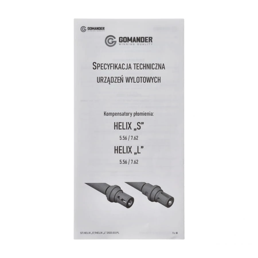 Helix 7,62 5/8 × 24 S to zaawansowany kompensator płomienia, zaprojektowany przez polską firmę Gomander. Wykonany z wysokogatunkowej stali o zwiększonej odporności na wysokie temperatury, skutecznie redukuje płomień wylotowy, zapewniając większą stabilność oraz precyzję strzałów, nawet podczas intensywnej eksploatacji.